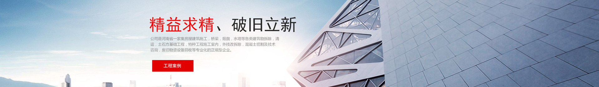 ??河南華鑫睿建筑工程有限公司成立于2013年11月份,公司是河南省一家集房屋建筑施工、各類建筑物拆除及清運(yùn)、土石方工程、特種工程、地基基礎(chǔ)工程、鋼結(jié)構(gòu)工程、廢舊物資設(shè)備回收等專業(yè)化企業(yè)。